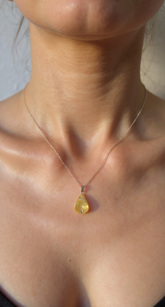 💛 Natural Citrine Teardrop Necklace – Stainless Steel Chain