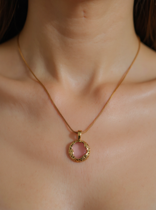 💗 Gold Plated Pink Stone Pendant Necklace – Romantic Vintage Look